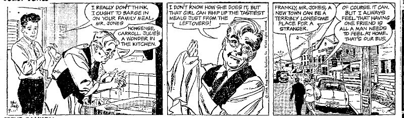 Anyway, one of the things Dave Sim mentions, is the fact that after the accident The Heart of Juliet Jones was hastily taken over by Bob Lubbers, while Drake was recuperating in hospital. Lubbers also did his own Sunday and Weekly strip Long Sam at the time, but it was not the last time he was doing two strips at once. And maybe he had someone else (Bob Oksnr?) helping out on Sam. Sim also mentiones that Drake was the obligated six weeks ahead on Juliet. This means, that the first Lubbers dailies should appear somewhere around october 20. As it happens, a new storyline starts on Sepember 10. In november, we can clearly see Lubbers coming in. But I am not sure with what daily his work begins. I am representing the whole story in two days. If all goes well, I will have the rest tomorrow.
