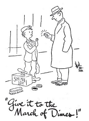Here is another cartoonist who I like more for his signature than his drawing style or gags. Like Fred Wilkinson, Ned Hilton was a run of the mill cartoonist, with a remarkable signature. Easy to spot, or at least easier than his style. He is also one of the few cartoonists from the Collier's/Saturday Evening Post lot that did not get his own newspaper strip. Or at least, not a regular strip. Allan Holtz thinks he is the artist signing Ned Michael on the New York Sunday Post filler strip The Family Upstairs. He reports two samles from 1955 and indeed when I did some research at the New Yrk Public Library last month, I came across some of those in 1955 and 1956. It may have lasted after that, no one knows. Or remembers.