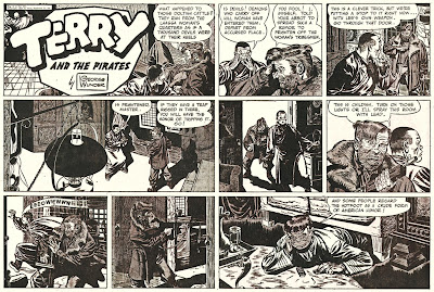 When Milt Caniff stopped doing Terry and he Piates, he had given his syndicate more than a year's notice, so they could find the most suitable replacement. Several artists auditioned, but in the end the job went oto a relative unknown artist, George Wunder. George had been a staff artist at Associated Press and although his own style was not a close imitation of Caniff's, it was similar. And he had all the time to study it and see what he could use. For the first year, he stayed pretty close to Caniff's style. It was only later that he developed his own style for the strip, which was competent enough, but ended up being called dull in all the history books. Still Terry and the Pirates remained a huge succes in all the papers al through the fifties and sixties and maybe it deserves a second look. So here are some assorted Sundays and a longer run of Sundays and dailies from 1947.