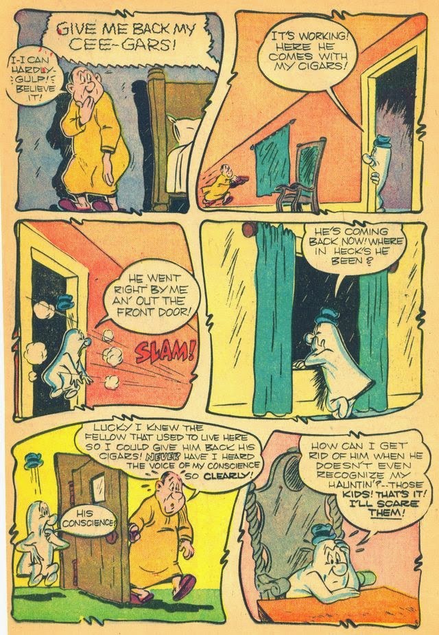 Lately I have been looking at some of the work Jack Bradbury did for ACG (before he joined Dell/Western to become one of their most prominent artists). He has a very pleasing and lively style. Like Paul Murray's work, it also has a familiar quality, because he drew so many stories for the various Walt Disney comics. But his work with other characters always seemed freer and more alive. He was particulary good at placing his action and I guess there are many artists who could learn a thing or two from him.