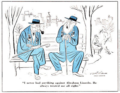 I am slowly selling all of the magazines I got to find all the stuff I have been showing here for the last ten years. To prepare for that, I am going through them again and I found a huge amount of Hank Ketcham cartoons I had not yet scanned most of them from two of Ketcham's biggest clients, Collier's and True. Over the years I have shown many of Ketcham's cartoons. There was a small book made by Fantagraphics, but that doesn not nearly contain even half of what's out there. Maybe one day I will sit down and gather all I have done and combine it with thes enew ones. I love these cartoons. Not only are they funny, Ketcham also displays a flair for character design that he use din his early years on Dennis the Menace - although it did go to the background in the later years, as more and more gags were centered around the main characters only.