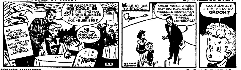 And here I was hoping that it may have sold to one or two larger papers that payed so well that they didn't have to find more. The Tuska Rogers pops up oftener, probably because it sold outdie of the AP package. The Tuska Scorchy though... never! It is so scarce that it is one of the few dates Alan Holtz got wrong in his exellent book on American Newspaper strips. He lists the Sunday as runnig just as long as the daily but all my information says it ended in December 1955