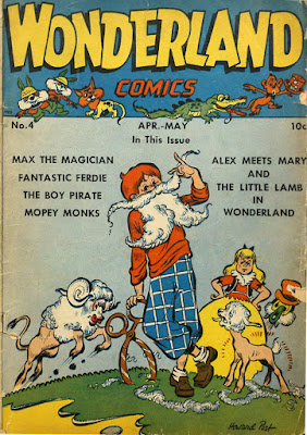 The great Howie Post started out as a Walt Kelly impersonator. For the Wonderland series from Prize, he imitated Pogo's dady as best as he could, with his own series of fairy tale inspired adventures (which, as we can see from the first, may not have been written by himself). I have collected all of these stories here. The nice thing about it, is that you can see his style and selfassurance grow from issue to issue. In the fifties he would do far less of this kind of work and Seeing his output here, I am not even sure where he spent most of his time. I do know he did some mad imitation work, some of which can be seen in my new book behaving Madly, which is out now and can be bought by using the link on the right.