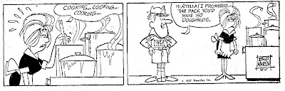 In the accompanying piece it is confirmed that the late sixties newspaper strip McGurk's Mob really was drawn by the same Marvin Stein who drew all these crime books in the fifties and was long suspected to be one of Jack Kirby's earliest inkers at Marvel. The style of McGurk's Mob (a family strip about a family with six kids or so) is visually completely different from the moody realistic work Stein did in the late fifties. Not really a very funny strip, or even remotely a hit, but certainly worth a look for Stein's place in comic history. I have shown some earlier whoch you'll find using the links underneath.